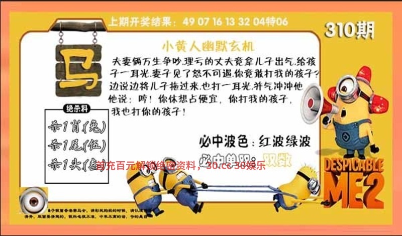 | 【小黄人幽默】一肖一码发布区《444394.com》 |